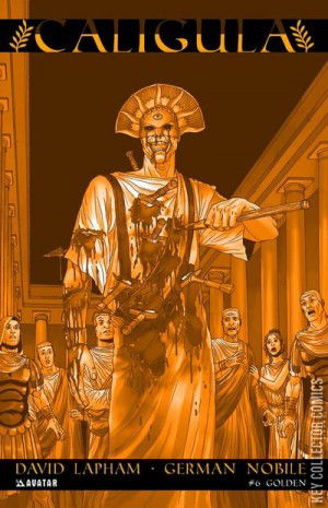 Cover: Jacen Burrows Writer: David Lapham Art: German Nobile The streets of Rome run red with blood as David (CROSSED) Lapham brings a startling conclusion to the story of the most feared Emperor of time, Caligula! Felix has endured the brutal slaughter of his parents, the intrusive savage needs of a nightmare steed, and the hedonistically maddened ravings of his beloved and despised enemy. Having been tasked to record the gospel of Caligula, can a mortal man decipher the supernatural secrets of Rome's most despised despot and put an end to the insanity? David Lapham drags fans into the darkest corners of Rome's history and dares you to stare down the madness within. German Nobile illustrates this final gruesome chapter in the Caligula epic. Caligula #6 is available with a Regular cover by Jacen Burrows, a Wraparound cover by series artist German Nobile, and a special Golden age of Rome retailer incentive cover.