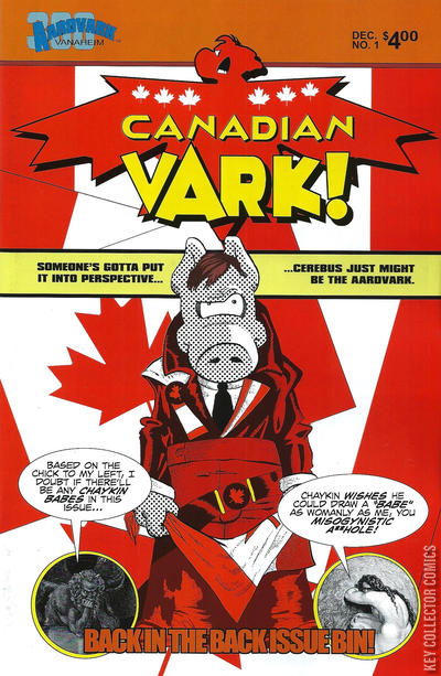 Now! With No Reprints! Book Length All-In-One Issue! Cerebus' Canadian Inaugural Address, 2020; Cerebus is his own Bioethics Mandarin; Cerebus beheads everyone at a campaign stop; Cerebus as 'Mecca/Jerusalem/Vatican City'-style candidate; Voluntary carbon tax paid only by environmentalists; Nutrient-dense Locavore Eco-magno variant systems; Friedrich Nietzsche, Environment Minister; Dancing With The Inconvenient Stars starring Jennifer Lopez as Al Gore; The Whore of Babylon serializes her diary online from when she was Cerebus' intern; the three answers that answer ANY question in a Liberal or NDP riding; Cerebus, Political Jargon Monster; 'And Men Shall Call Him H.E.L.O.C.' Batvark and Woolly-Bully's Sacred African Mask of Doom.