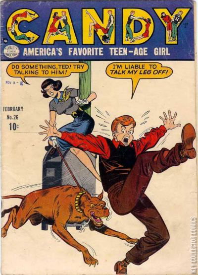 Home / Quality / Candy / Candy #26 Quality Released February 1952 Candy #26 Add to Collection Want It Synopsis No synopsis available. Issue 26 of 64 Add to Collection Buy it on eBay Buy on eBay Low $30 Mid $85 High $275 Synopsis No synopsis available. Details Series Candy Cover Date February 1952 Pages 36 UPC N/A Cover Price $0.10 Final Order Cutoff N/A Creators No creators listed. Price Guide Log in or subscribe to access detailed graded price information and market insights. Log In Subscribe