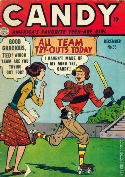 Home / Quality / Candy / Candy #33 Quality Released December 1952 Candy #33 Add to Collection Want It Synopsis No synopsis available. Issue 33 of 64 Add to Collection Buy it on eBay Buy on eBay Low $30 Mid $85 High $285 Synopsis No synopsis available. Details Series Candy Cover Date December 1952 Pages 36 UPC N/A Cover Price $0.10 Final Order Cutoff N/A Creators No creators listed. Price Guide Log in or subscribe to access detailed graded price information and market insights. Log In Subscribe