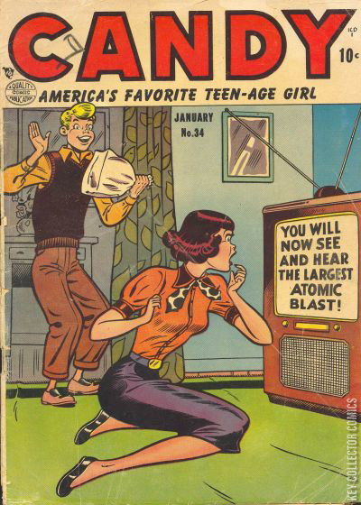 Home / Quality / Candy / Candy #34 Quality Released January 1953 Candy #34 Add to Collection Want It Synopsis No synopsis available. Issue 34 of 64 Add to Collection Buy it on eBay Buy on eBay Low $25 Mid $70 High $235 Synopsis No synopsis available. Details Series Candy Cover Date January 1953 Pages 36 UPC N/A Cover Price $0.10 Final Order Cutoff N/A Creators No creators listed. Price Guide Log in or subscribe to access detailed graded price information and market insights. Log In Subscribe