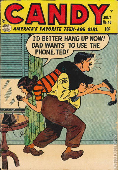 Home / Quality / Candy / Candy #40 Quality Released July 1953 Candy #40 Add to Collection Want It Synopsis No synopsis available. Issue 40 of 64 Add to Collection Buy it on eBay Buy on eBay Low $30 Mid $85 High $285 Synopsis No synopsis available. Details Series Candy Cover Date July 1953 Pages 36 UPC N/A Cover Price $0.10 Final Order Cutoff N/A Creators No creators listed. Price Guide Log in or subscribe to access detailed graded price information and market insights. Log In Subscribe