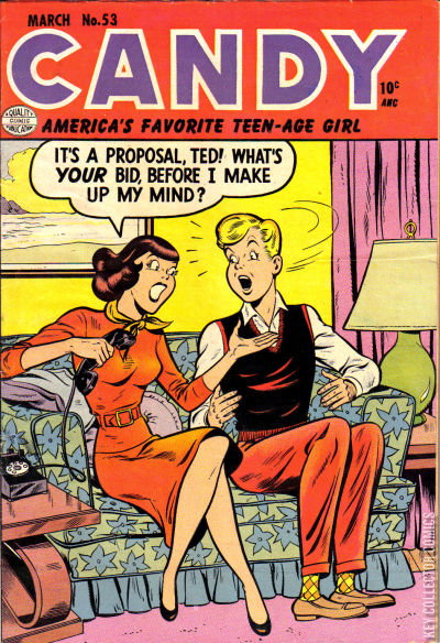 Home / Quality / Candy / Candy #53 Quality Released March 1955 Candy #53 Add to Collection Want It Synopsis No synopsis available. Issue 53 of 64 Add to Collection Buy it on eBay Buy on eBay Low $8 Mid $25 High $90 Synopsis No synopsis available. Details Series Candy Cover Date March 1955 Pages 36 UPC N/A Cover Price $0.10 Final Order Cutoff N/A Creators No creators listed. Price Guide Log in or subscribe to access detailed graded price information and market insights. Log In Subscribe