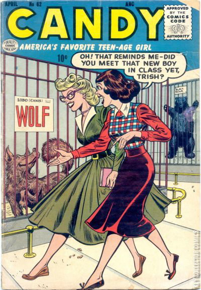 Home / Quality / Candy / Candy #62 Quality Released April 1956 Candy #62 Add to Collection Want It Synopsis No synopsis available. Issue 62 of 64 Add to Collection Buy it on eBay Buy on eBay Low $12 Mid $35 High $120 Synopsis No synopsis available. Details Series Candy Cover Date April 1956 Pages 36 UPC N/A Cover Price $0.10 Final Order Cutoff N/A Creators No creators listed. Price Guide Log in or subscribe to access detailed graded price information and market insights. Log In Subscribe