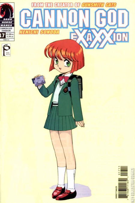 Yeah, it was really cute in that last issue, when that darling little Akane ended up in Hoichi's lap while he was piloting his giant robot, Exaxxion. It was fantastic that the sexy android, Isaka, was able to go and rescue Akane and Hoichi's mom from those pesky alien forces, and now the two are up in the cockpit, and what's that in the way of Hoichi's view? Why, it's a cute pair of panties on an understandably embarrassed schoolgirl (this IS manga after all)! But it's not all red faces and panty peeks. No. Strange wires have started snaking out from Akane's leg, and it probably has something to do with that odd bullet the Riofaldian doctor shot into her. At any rate, it's causing a lot of pain for poor Akane, and it's about to cause a lot of trouble for Hoichi and friends. Find out why!