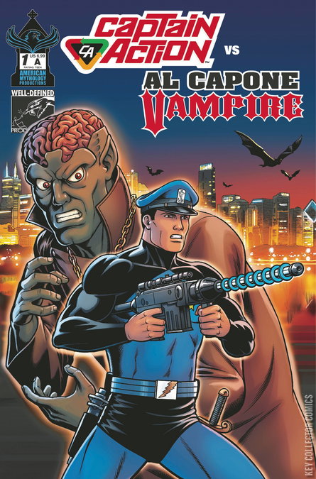 Captain Action, the very first superhero action figure, returns to comics with an epic 48-page one-shot that might just be 2025's most off-beat crossover. Hot on the trail of his perennial foe, Doctor Evil, Captain Action (along with Action Boy, Lady Action and a host of agents from the alphabet agencies) learns of a massive conspiracy in Chicago, one that brings him face to face with the recently returned Al Capone and another brand-new adversary, Professor Fangs! Covers A and B combine to form one larger image