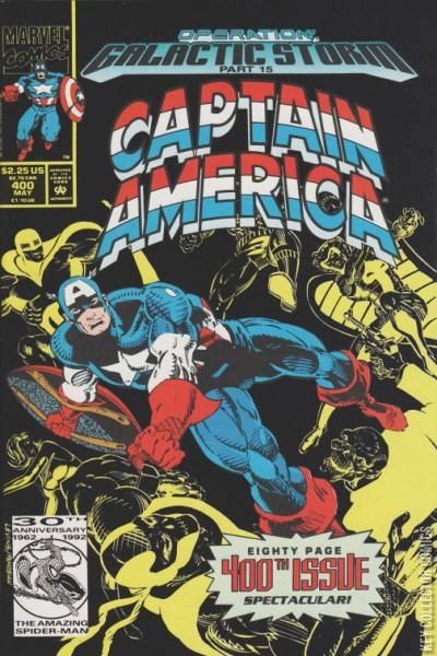 Operation: Galactic Storm, Part 15: "Murder by Decree!"On Hala, homeworld of the Kree, an explosion occurs in the Citadel of Judgment. Captain America is suddenly engulfed by wreckage and human debris. The Avengers who left him behind are still stunned by the decision, though Iron Man maintains it was the only thing to do. Internally, though, he ponders the possibility he could be responsible for the death of America's greatest hero. Captain America awakes in an empty room and thinks through the events he just experienced: the Accusers took him away from the other imprisoned Avengers to the Supreme Intelligence, who was about to pronounce a verdict of death, when the explosion occurred and he was buried alive.Cap is brought out of his reminiscence by an attack from behind. Six of his most dangerous enemies suddenly surround him: King Cobra, Batroc, Flag-Smasher, Viper, Crossbones, and the Red Skull. Cap manages to hold them off for a time, but eventually he is overcome. Just before the Red Skull has his final victory over his adversary, Batroc frees Cap and helps him overcome the other villains. Batroc explains as a gentleman he couldn't let so worthy a foe be defeated in such a dishonorable way. Soon Cap learns Batroc and the others were conjured by the Supreme Intelligence from his memory. The Supreme Intelligence appears and congratulates Cap on being so resourceful, but his grip on life will prevent him from achieving the highest honor of being assimilated into the Supreme Intelligence's collective mind. He flings Cap into the darkness, ominously declaring he only has moments to live. The final panel explains why: the Skrull ship hijacking the Nega-Bomb is about to entire Kree space."Out in the Cold," starring The Falcon and U.S. Agent. Arctic Circle.A group of Inuit eskimoes are ice-fishing, when a plane buzzes them, creating a sonic boom. The group is frieghtened except a large man with light skin and red hair. The sound of the plane triggers a flashback for the...