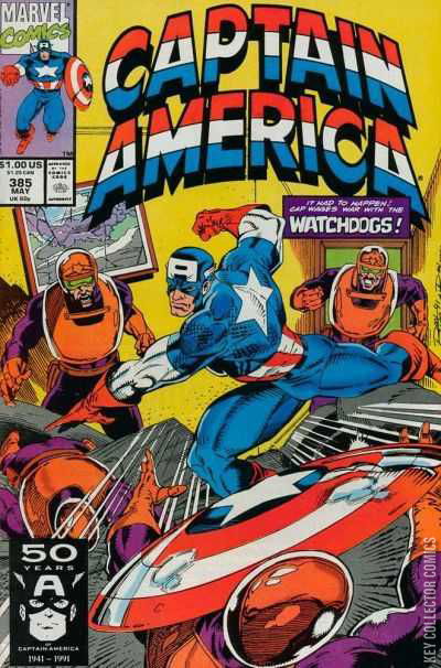 "Going to the Dogs" This issue features the first chapter in a two-part story teaming Cap with the West Coast Avengers' own USAgent. Also included is a back-up story featuring Diamondback.Synopsis At the offices of Rabid Records, a music company which specializes in Hip-Hop music, a group of soldiers douse the expensive and irreplacable belongings and they light the fuse on a bomb. As they're leaving, one of the soldiers, Bernie's friend Mike Farrel, notices a man lying in a closet. A drunk janitor, Mike tries to get the others to help him pull him to safety, but they refuse as there is not enough time. After debating whether or not he should try to pull him to safety, he opts to run to safety himself, saying he wouldn't be able to pull him quick enough and that they'd both be caught in the explosion. The rest of the Watchdogs are annoyed by the "new guy"'s actions. Another soldier speaks to Mike, who is upset about the man who died in the explosion. His teammate replies "Anybody stupid enough to work for those filth-mongers doesn't deserve your pity." At the Avengers mansion, Steve is doing his routine workout. The phone rings, and Jarvis informs Steve that Bernie is outside. He sends her up, but Steve worries about a picture of Rachel lying on his shelf. He decides to keep the picture there so he can explain her to Bernie, as he is not really interested to renew their relationship together. Bernie walks in, and Steve compliments her on her jacket. She comments on his room and how he needs new furniture. She notices the picture on his shelf but does not say anything to Steve. She tries to get him to go shopping with her for new furniture for him, but he keeps making excuses. She finally says she'll just pick some stuff out and if he doesn't like it, they can return it. At Brooklyn Heights, Bernie knocks on Mike's door. He answers and she notices how upset he seems. He wants desperately to tell her but instead only tells her that someone died in a fire last night. Suddenly, one...