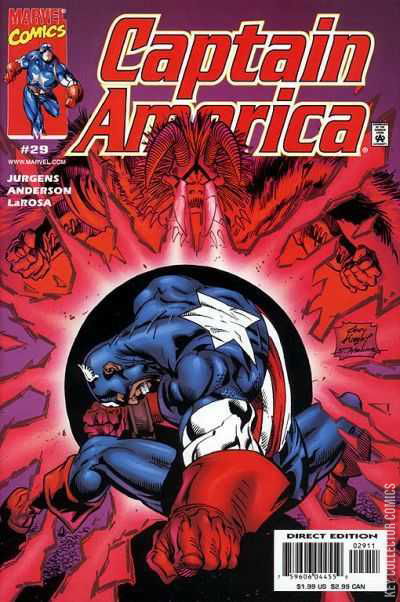 "The Savage Man!" Part 2 of 4. Guest-starring Ka-Zar.Captain America has arrived in the prehistoric Savage Land in search of his missing ex-girlfriend and S.H.I.E.L.D. Agent 13, Sharon Carter. But the Sentinel of liberty has discovered that there is more amiss here then he at first realized. Someone is performing bizarre experiments on the denizens of the Land, and its protector, Kevin Plunder, a.k.a. Ka-Zar, has been inexplicably aged. Cap will be shocked to learn who's behind it all. Includes the 8-page insert "Fast Lane: Back on Target!" Part 4 of 4. Starring Spider-Man. Guest-starring the Avengers, Fantastic Four, and Storm.