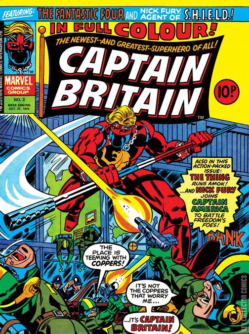 Captain Britain in "Mayhem on a Monday Morning" Comic also contains reprints of Fantastic Four and Nick Fury, Agent of S.H.I.E.L.D.