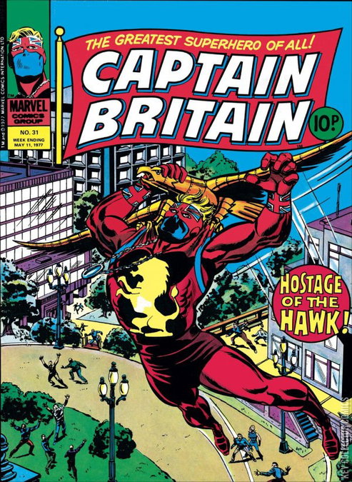 Captain Britain in "In the Shadow of the Hawk!" Comic also contains reprints of Fantastic Four, Nick Fury and Marvel Team-Up