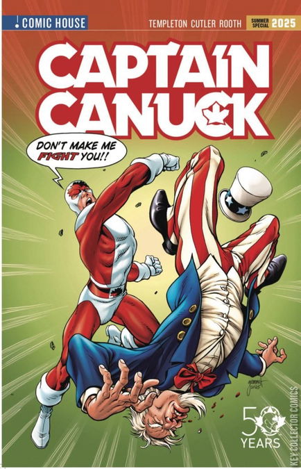 Captain Canuck and Uncle Sam have been friends and allies for years, but when the American Icon betrays the Canadian Crusader and murders an innocent man, it's up to Captain Canuck to stop Sam from hurting anyone else. High Adventure and winking political satire in one action packed Summer Special from Eisner Award-winning Canadian writer Ty Templeton (Batman Adventures, Spider-Man), Canadian artist David Cutler (Captain America, X-Men), and Canadian colorist Mike Rooth (Savage Sword of Conan, Swamp Thing). All wrapped up in a stunning cover by Canadian comic book legend, Tom Grummett. Includes a special West Coast Captain Canuck story by Dan Collins and David Ross (The Punisher, Iron Man).