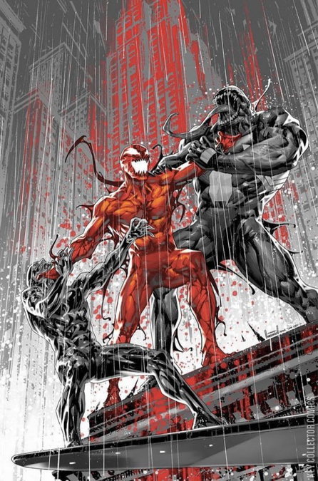 CARNAGE SHARK / MY RED HANDS / MY NAME IS CARNAGE The symbiotic slaughterfest continues, in the second installment of the stomach-churning study of ultraviolence called CARNAGE: BLACK, WHITE & BLOOD! FIRST! The DAREDEVIL team of Chip Zdarsky & Marco Checchetto lends their brutal sensibilities to an eye-popping story pitting Carnage against THE AMAZING SPIDER-MAN as you’ve never seen before! THEN! Because you readers out there in Mighty Marveldom deserve the best, we’ve brought comics heavyweight Ram V. aboard for a story sure to make your skin crawl!