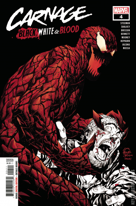 THE DEAD END! These past several months, a cavalcade of creators have lent the most sinister of their sensibilities to the symbiote corner of the Marvel Universe, and the final epic installment of CARNAGE: BLACK, WHITE & BLOOD is no exception! THIS ISSUE sees the return of two superstars who are no strangers to symbiote business— Declan Shalvey AND Ryan Stegman !