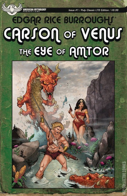 In 2020, Edgar Rice Burroughs, Inc. will be launching the Edgar Rice Burroughs Universe, an all-new series of interconnected novels by today's top sci-fi writers... And it all begins at American Mythology with a groundbreaking comics prequel series to the first ERB Universe novel, Matt Betts' Carson of Venus: The Edge of All Worlds! In Carson of Venus: Eye of Amtor, stranded Earthman Carson Napier fights against time and the planet Venus itself, tasked with gathering natural artifacts from across wild Amtor before a mad king executes his friends Ero Shan and Nalte. But Carson is not alone, as Princess Duare battles at his side against unearthly creatures and savage landscapes! Then, thrill to the adventures of scientist Jason Gridley and his mysterious protégé Victory Harben in the astounding Pellucidar: Dark of the Sun, a special, three-part, back-up story that launches the epic plotline that will run throughout the novels in the first ERBU "super-arc!" Carson of Venus Eye of Amtor #1 is available with three covers - Main by Vincenzo Carratu, Variant by Mike Wolfer, and a limited edition 1 in 350 Pulp cover, also by Carratu.