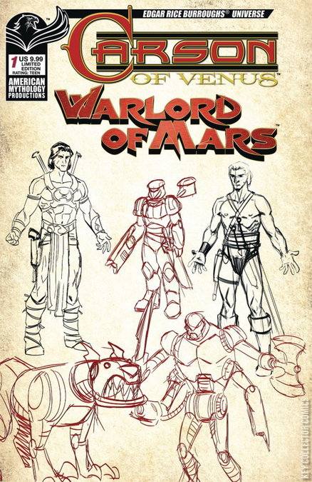 Join us for an epic crossover as two of Edgar Rice Burroughs' classic sci-fi properties collide in this once-in-a-lifetime event! Carson Napier and John Carter find themselves embroiled in an alien scheme that pits them against a veritable army of deadly warriors, killer robots, and vile villains. With only their wits and skills to guide them, the unlikely partners face death on an unknown world far from their adapted home worlds. Fantasy and science fiction combine with incredible action and adventure to deliver the ERB event of the year! Carson of Venus / John CarterWarlord of Mars: The Princess in the Tower #1 is available with three covers - Main Cover by legendary comic artist, Michael Kaluta, Warriors Cvr by interior artist Cyrus Mesarcia, and Limited Edition 1/350 Character Design cover also by Mercia!