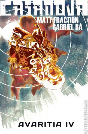One of the most critically acclaimed series of the year comes to its catastrophic conclusion. CASANOVA: AVARITIA #4 answers every question (almost), solves every riddle (kind of), and explains absolutely everything you ever wanted to know about the world of CASANOVA (in a way). Casanova Quinn, hated on all sides by tyrant and hero alike, must flee from time and space, aim one batch of enemies at the other, kill everybody and save everything simultaneously. Don't be afraid: you are an apocalypse dreaming of butterflies + the first part of reincarnation is dying... By the Eisner-laden team of MATT FRACTION (AvX, INVINCIBLE IRON MAN, THE MIGHTY THOR, FEAR ITSELF) and GABRIEL BA (UMBRELLA ACADEMY, DAYTRIPPER).