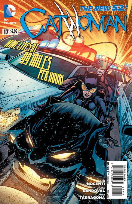 RAT TALES While out one night, Catwoman spots a gang of kids called the Rat-Tails, who are obviously waiting around in a playground to make a drug deal. Sure enough, a man in a black suit arrives and buys 20 dollars worth. However, he turns on them, demanding his employer's cut of their unsanctioned deals in the Badlands. The young boys call for help from an older member, and Selina decides that she needs to get involved as Catwoman. Before long, she knocks the kids over and ties the man in the suit to a post. She condemns him for using kids to deal drugs, and demands to know who his employer is. All the man will say is that there was a big fat guy in a tux, and now there's a skinny man in a suit. Turning to the younger boys, she promises she won't bust them if they will lend her their eyes on the streets. The older boys she sends running, warning that if she sees them using kids again, she'll come for them, as she pockets the drugs. During the day, Selina and Gwen Altamont do some reconnaissance at the Gotham Museum for a job stealing paintings. Since her last encounter with the Black Diamond, Selina has gone off gems for a while. They determine that Selina could remove one full canvas from its frame in a minute, which makes it a 20 minute job. Back at her penthouse, they do a practice run on a flea-market painting, and Selina pulls it off in less than a minute. Gwen intends to be waiting outside in the van during the job, timing her. In the meantime, Selina asks Gwen if she's ever seen the logo on packaging for the drugs she confiscated - a rat. Gwen claims to know nothing. Gotham City Police Headquarters is overcrowded with crooks, and Det. Carlos Alvarez is uncomfortable with his new partner Tammy's tough-on-crime attitude, in that it is tough on crime, but light on justice. They are still working the B&E that Carlos was called to recently, having found three sets of prints on a stolen idol they recovered. One set of prints belongs to the doorman who tried to fence it, one belongs to Gwen Altamont, and the third is incomplete, but the identification points have brought up no results. When Carlos discovers that it was two women who pulled the job, and one of them was Gwen, he realizes that that he saw them, and that the unidentified other woman was Catwoman. This time, he won't let her get away from him. Later, Selina visits the Foundling Hospital, hoping to become a mentor to the young boy named Milo who was a victim of the Joker's attack on her. One of the nuns there suggests that Milo has done something very bad, and lies, referring to his claims of having met a cat woman who gave him a stuffed teddy - which he did, in fact. That night, Selina begins robbing the museum of its paintings, but can't seem to get Gwen on her phone. Meanwhile, a hopelessly inept thug is trying to pull a job in the museum at the same time, but his ineptitude poses a risk to Catwoman. She recognizes his suit as the same one worn by the drug pusher she saw earlier, and questions him about his boss, too. Sadly, he is too low in the chain of command to know anything, and she takes pity on him, suggesting that they could make a getaway together, since her ride is missing. She is disappointed, though, when she sees that his getaway vehicle is a Vespa. Sadly, she lets him go on his own, and finds herself stranded on the roof with several stolen paintings in rolls. Gwen, meanwhile, has been brought in for questioning by Carlos and Tammy, but she has someone with a lot of power protecting her, and all it takes is one very short phone call to get her out. Alvarez' plan to make her give up Catwoman doesn't seem to be working. Elsewhere, the inept thug's employer is pleased with the haul from the robbery; a set of bird-shaped cane-tops. When he hears that a cat woman was also at the museum that night, he is given pause.