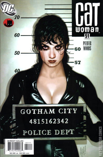 BACKWARD MASKING PART 2 Holly and Karon leave a performance of the "Rocky Horror Picture Show" in high spirits when their discussion of fishnets leads them to wondering what Selina is up to. Everyone in the neighborhood saw Catwoman fighting a woman in fishnets and a top hat last night. Their conversation is cut short when they run into Slam Bradley. Holly asks Slam if Selina knows he's back in Gotham, but Slam isn't sure he'll see his son Sam while he's in town, let alone Selina. Holly insists he stay long enough for a cup of coffee at least. Black Mask watches them from a car. His henchman wonders if Slam's presence changes their plans, but Black Mask says it only makes things more interesting. Catwoman is breaking into Wayne Manor via the window when Bruce shines a flashlight on her and asks her why she didn't just use the front door. Selina goes on the defensive, saying that's what villains do, which confuses him. She explains that Zatanna came to see her and asks why he didn't tell her about how some members of the Justice League of America interfered with her mind. Bruce says he had no idea they did it to her, and he alludes to the fact that they did it to him. Selina came to Wayne Manor for one reason. Bruce knows her better than anyone else, so she wants to know: Who is she? He tells her that she's Selina Kyle, the Catwoman, who risks her life to protect the people of the East End. Selina disagrees. That was what the JLA made her, not who she really is. But Bruce says she's the same person. Whatever the JLA did to her, they can't change who she is. She controls her own life. Selina agrees. Bruce asks Selina to stay because she doesn't look so good, but she leaves. She doesn't think he can relate to her problem--who's going to mess with his mind? Alfred comes to ask if something is wrong. He heard voices. Bruce tells him to go back to bed and heads downstairs to the Batcave where he contacts Zatanna. She should have told him what she did to Catwoman. Catwoman is pulled over by the police on her way home. The car is stolen, of course--she couldn't take the bus out to see Bruce. The police officer asks to see her license and registration before he shines the flashlight in her face and sees that it's Catwoman. He calls for backup, but Catwoman isn't going to wait for that. She slams the car door open into him, and he fires his gun at her. She leaps away and makes her way back to her apartment. Catwoman finds Karon sleeping on her couch. Karon is distraught when she wakes up, and she tells Selina what happened outside the movie theater in stilted fragments, faltering on "They took--" Selina demands to know if Black Mask took Holly, but Holly says he took Slam. Slam has been tortured. Angle Man asks Black Mask if he's dead, but Black Mask assures him that there'd be little fun if he were already dead. Also, he's recovering this for posterity. Black Mask asks where Smart Bomb went, and Angle Man says he took off when Black Mask said they were going after Holly. Maybe if he'd known about the change in plans, he'd be more into it. Sam Bradley is on the phone with Lenahan. He wants out. He tells Lenahan that he can't stand by when an innocent girl is tortured. Can he? Lenahahn sits there with his head in his hands, then says, "Go get her." Catwoman is racing through the city, hoping she isn't too late. She drives her motorcycle through the glass door of Black Mask's office building, then shoots one of his henchmen in the shoulder. She holds the gun to his head until he admits that Black Mask's torture chamber is on subbasement three. She is in the elevator when the floor begins to shake. Angle Man asks Black Mask if it's one of his enemies, but it's one of his friends--Smart Bomb, who demands that they let "her" go. Angle Man can't believe he's wimping out like this, but Smart Bomb shows no hesitation in shooting him. Black Mask isn't one to argue with a tactical nuclear weapon. If he wants "him," he can take "him." Sam Bradley then realizes that Black Mask's hostage isn't Holly Robinson, it's his father Slam. Selina is still in the elevator when the floor shakes again. She hears several thuds and whams before the elevator door opens and she sees Angle Man and Black Mask lying on the floor, either unconscious or dead. She hears Smart Bomb saying "c'mon, c'mon," and she is momentarily amazed that he would save Slam... then she learns that Smart Bomb is Sam Bradley.