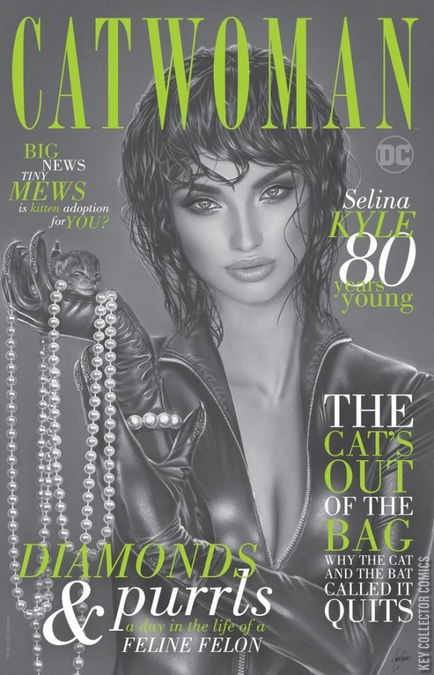 SKIN THE CAT / NOW YOU SEE ME / HELENA / THE CATWOMAN OF EARTH / A CAT OF NINE TALES / LITTLE BIRD / BORN TO KILN / CONVENTIONAL WISDOM / ADDICTED TO TROUBLE / THE ART OF PICKING A LOCK Our gal Catwoman is turning 80 (and looking very good, if we meow say), and DC is celebrating with nothing less than with a huge soiree, invite only, packed with creators who mean the most to her and to whom she means the most! Stories featured in this 100-page spectacular include a tail—sorry, tale—that takes place at the end of the Brubaker/Stewart Catwoman run, in honor of artist Darwyn Cooke. Plus, Catwoman is caught by an exotic cat collector, runs into a wannabe thief trying to prove himself as her apprentice, encounters a mystery involving memorabilia from alternate continuities, and of course some Bat/Cat fun.