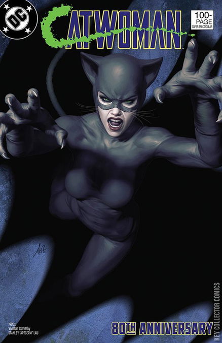 SKIN THE CAT / NOW YOU SEE ME / HELENA / THE CATWOMAN OF EARTH / A CAT OF NINE TALES / LITTLE BIRD / BORN TO KILN / CONVENTIONAL WISDOM / ADDICTED TO TROUBLE / THE ART OF PICKING A LOCK Our gal Catwoman is turning 80 (and looking very good, if we meow say), and DC is celebrating with nothing less than with a huge soiree, invite only, packed with creators who mean the most to her and to whom she means the most! Stories featured in this 100-page spectacular include a tail—sorry, tale—that takes place at the end of the Brubaker/Stewart Catwoman run, in honor of artist Darwyn Cooke. Plus, Catwoman is caught by an exotic cat collector, runs into a wannabe thief trying to prove himself as her apprentice, encounters a mystery involving memorabilia from alternate continuities, and of course some Bat/Cat fun.