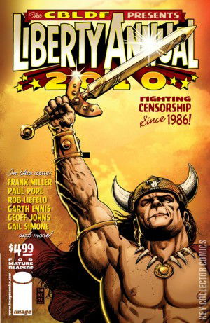A COMIC BOOK LEGAL DEFENSE FUND BENEFIT BOOK! LIBERTY COMICS is the annual ensemble of comic book greats who have donated their time and energy to support the Comic Book Legal Defense Fund. CBLDF is is a non-profit organization dedicated to the protection of the First Amendment rights of the comics art form and its community of retailers, creators, publishers, librarians and readers. The CBLDF provides legal referrals, representation, advice, assistance and education in furtherance of these goals. The roster for LIBERTY COMICS 2010 includes contributions such as: A new The Boys story by GARTH ENNIS & ROB STEEN, the first new Megaton Man adventure by DON SIMPSON in over a decade, an all-new Milk & Cheese story by EVAN DORKIN, a preview of The Contrarian by SCOTT MORSE, a new Conan tale by DARICK ROBERTSON, Boilerplate by ANINA BENNETT & PAUL GUINAN and 'Why We Fight!' by editor LARRY MARDER. Plus: all-new short stories by GEOFF JOHNS & SCOTT KOLINS, FRANK MILLER, GABRIEL BA & FABIO MOON, PAUL POPE, JEFF SMITH, TERRY MOORE, DAVE GIBBONS, BRIAN AZZARELLO & JILL THOMPSON, ROB LIEFELD, COLLEEN DORAN and SKOTTIE YOUNG. All proceeds from LIBERTY COMICS will benefit the First Amendment legal work of the Comic Book Legal Defense Fund!