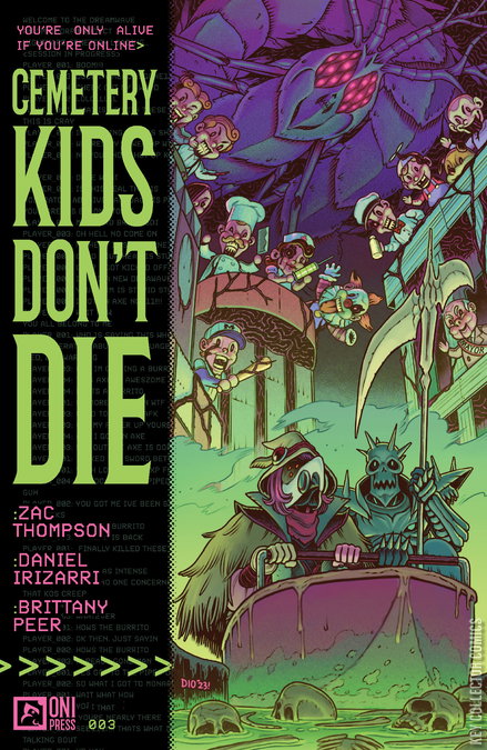From creators Zac Thompson (Hunt for the Skinwalker) and Daniel Irizzari (XINO), enter the next level of the subversive horror/sci-fi hybrid that writhes with fear and tension! A new kind of evil awaits players in the shadows of Nightmare Cemetery! The game's tricks—playing out in the real world in gruesomely violent ways—drive a wedge between friends thus threatening efforts to find Pik. When Enid bails from the game, she begins her own investigation into the Dreamwave’s effect on its players and uncovers an uncanny pattern of mysterious accidents.