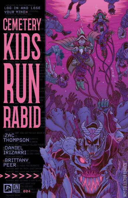 Gameplay warps reality in the conclusion, and family and friendships are irrevocably changed forever!The endgame arrives. Where truths are revealed, souls are obliterated and tears fall. As the Cemetery Kids follow a possessed Pik into the final level of The Blighted Sprawl, the gang find that victory comes at a tremendous cost. Join writer Zac Thompson (Into the Unbeing) and artist Daniel Irizarri (Holy West) for the final chapter of their futuristic horror epic. You’ll think twice before falling asleep during video games again!