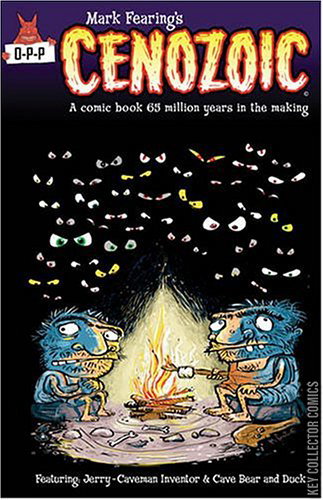 From cartoonist MARK FEARING (PERIPHERY) comes a comic book that offers a skewed view of mankind�s development. Perhaps we haven�t changed all that much in the past 85,000 years. No doubt many independent thinkers of The Stone Age met resentment from those who preferred life in The Dirt Age. And pity the poor human who dreamed about life in The Down Pillow Age or the Not Having to Eat Lizards Age. Part satire, part funny-animal book, the first issue of CENOZOIC introduces CAVE BEAR AND DUCK and features the return of JERRY CAVEMAN INVENTOR. CENOZOIC; a comic book 65 million years in the making. Of course you can say the same things about Velcro and rubber bands. Featured Stories: Jerry Caveman Inventor: MONKEY TROUBLE Facing scads of angry monkeys the humans take refuge in their cave. Can mankind regain their primary status in the primeval world? Cave Bear and Duck: YOU CAN�T HAVE WHAT YOU DON�T GET Duck and Bear seek out delicious forest food, only to have Bear captured. Can Duck rescue Bear, or will Bear become just another comfortable sofa in the human�s cave?