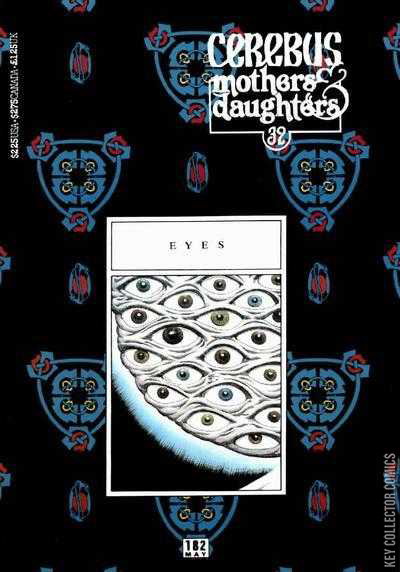 1. Eyes part 1 (comic)Roach becomes "Forty Thousand Eyes Roach." Cirin gets Cerebus' sword and cuts off his right ear. 2. Eyes part 2 (text)Viktor talks to the reader about Cerebus3. Rare Bit Fiends (by Ric Veitch)Dave SIm makes an appearance