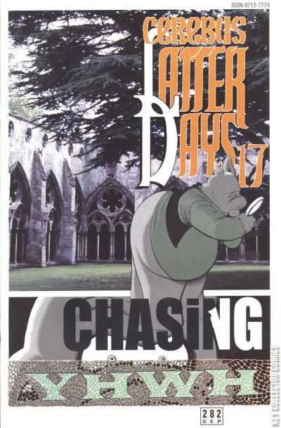 Cerebus continues dictating his commentaries on the second and third books of the obscure scared texts. Konigsberh, the not-so-good Samaritan, meanwhile, continues his diary entries documenting his self-analysis as a dedicated Fraudian. Also contains Part 5 of Sim's essay, "Islam, My Islam." The countdown to issue 300 (March, 2004) continues... t-minus 18 and counting!