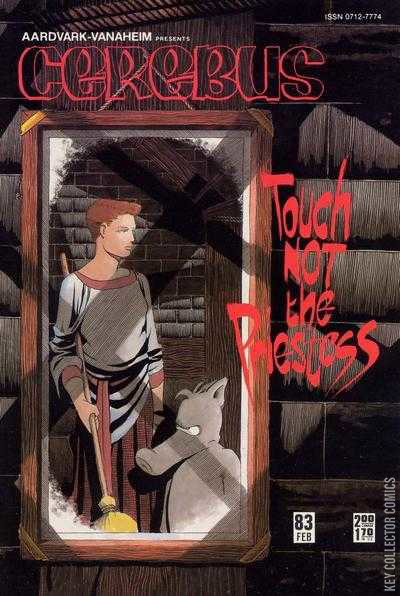 Cerebus lands head first outside Michelle's door. She tells him about Weisshaupt while showing him how to use a dustpan. She also gives a different life story than the one before.