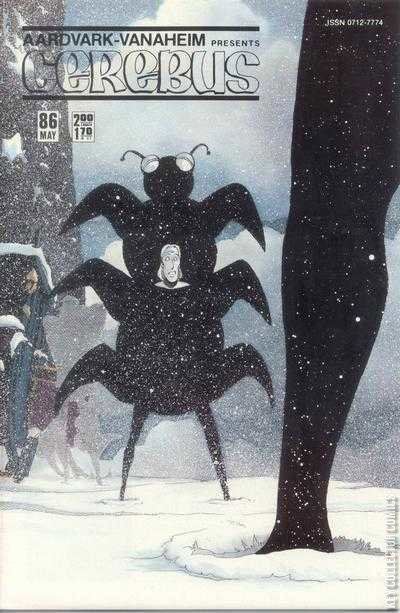 This the first issue that Gerhard is credited!Because of his whisky and codeine buzz, Cerebus is hanging on Mick's leg; Keef is even more out of it. Elrod is in a giant Cockroach costume. The Sacred Wars Roach is off to take Astoria and fight the Anti-pope Epop, and Cerebus start to climb after him. Also the tower is growing...