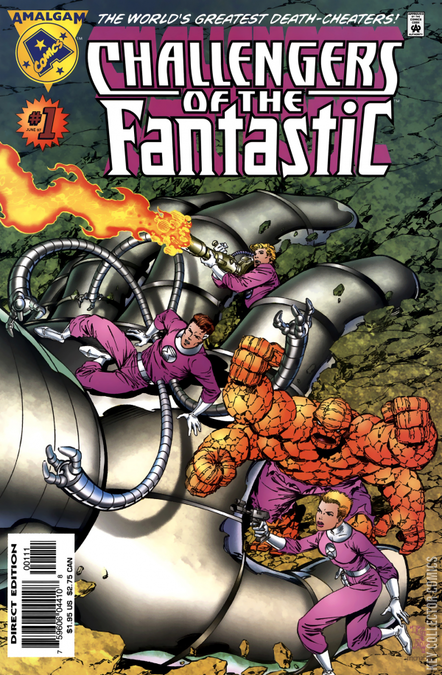 CHALLENGERS OF THE FANTASTIC In order to save two universes, the young hero known as Access was forced to use the power of Amalgam (see Marvel versus DC (1996) #3). In this issue, Marvel's First Family, the Fantastic Four, and sci-fi heroes, the Challengers of the Unknown, are merged to create the Challengers of the Fantastic. The Challengers must gather their courage as an ominous warning from Uatu the Guardian (Watcher/Guardians of the Universe) foretells the coming of Galactiac (Galactus/Brainiac).