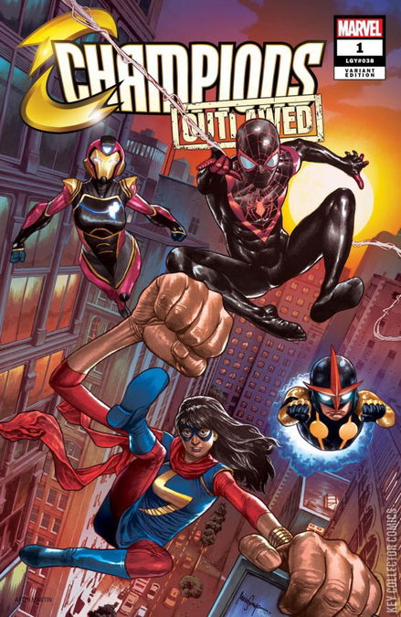OUTLAWED, PART 1 THE CHAMPIONS RETURN IN TROUBLED TIMES! A law is passed that goes against everything Ms. Marvel, Nova and Spider-Man founded the Champions for...but the world still needs heroes, even if the world doesn't want them right now. After Ms. Marvel makes an unexpected and emotional announcement that her team won't go down without a fight, a group of teen vigilantes gathers to plan their next move. But the C.R.A.D.L.E. task force is hot on their trail, and there's a spy in their midst... Eve L. Ewing ( IRONHEART , OUTLAWED ) and Simone Di Meo ( IMMORTAL HULK: THE BEST DEFENSE ) team up for a dramatic new era of Champions that will define Marvel's teen heroes for years to come! LEGACY #38