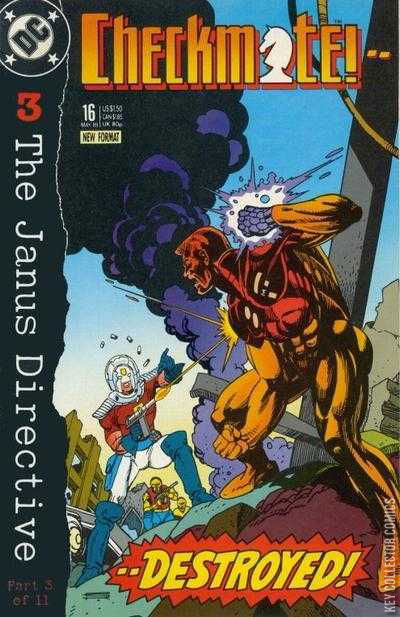 "The Janus Directive," part 3 of 11. Harry Stein sends a Knight, Black Thorn and Valentina Vostok to grab Amanda Waller before her efforts destroy the nation's spy agencies...the way General Eiling wants Major Force to destroy Checkmate's headquarters.Notes:Part 2 continues from Suicide Squad #27.Part 4 continues in Suicide Squad #28.Guest penciler Rick Hoberg.