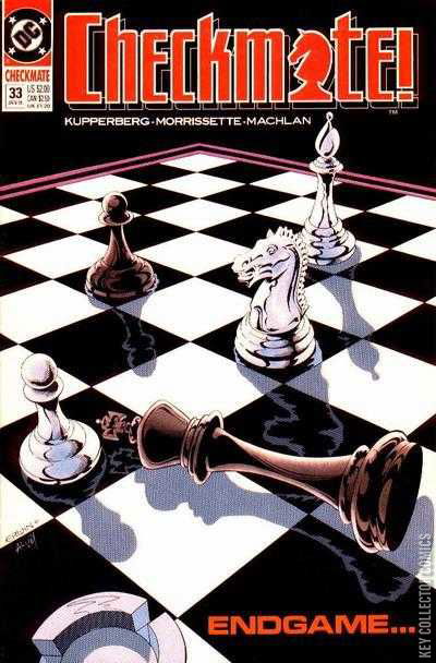 Part 3 of 3. Checkmate's final mission in its own title as the entire Knight force engages in an all-out assault against the army seeking to overthrow the nation of Austanburg. Written by Paul Kupperberg, with art by Gabriel Morrissette and Mike Machlan. Plus, a special 8-page backup that pits Checkmate against deadly arms dealers in exotic India. Written by Kupperberg, with art by Randy DuBurke.