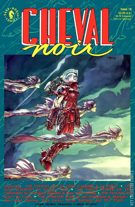 This issue we reach the climactic conclusion to Haldeman and Marvano's critically-acclaimed "Forever War: Book Two." Meanwhile, readers can enjoy the continuations of "Chninkel" by Rosinski and Van-Hamme, Cosey's "Voyage to Italy," as well as Tardi's classic "The Mad Scientist" with Adele Blanc-Sec. Also in this issue can be found the action-climax of Eddie Campbell and Ed Hillyer's hilarious "Eyeball Kid!"