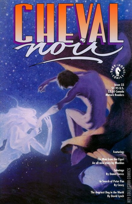 "The Man from the Ciguri," Moebius' all-new sequel to The Airtight Garage, returns this issue after a two-month hiatus -- and all is not well with Major Grubert, who finds himself stranded on Earth and pursued by the Paris police! Meanwhile, things heat up in the second chapter of "Sabotage," a fast-paced tale that stretches from Vietnam to LeMans, by Spanish artist Daniel Torres. Also in this issue: Cosey's "In Search of Peter Pan" continues, the always delightful Rick Geary brings us "The Terrible Chain Gang," and David Lynch's "The Angriest Dog in the World" barks up the wrong tree. It's all wrapped up in an absolutely dreamy cover painting by Brian Apthorp!