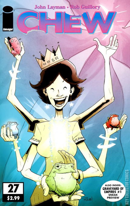 'Space Cakes,' Part Two. Remember last year when CHEW shocked, confounded and enraged the entire comic book industry and indeed the entire world by printing an issue out of sequence? Here's that issue all over again, in order and in context, and now jam-packed with extras and supplemental material so you'll feel just fine about handing us 299 pennies all over again!