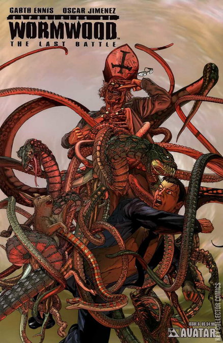 Hell on Earth is here, live, from New York! The final issue of the Last Battle is so epic in scope it has to be super-sized! The recently-departed Pope Jacko is back and determined to rule New York by turning it into a demonic infested Hell. Danny Wormwood is in way over his head with domestic disasters and literal Armageddon seeming closer than ever. Will Jay be able to rise to the challenge and help, or he is pretty content to sit in the bar and drink? Series artist Oscar Jimenez provides the stunning cover and interior art. Ennis drags the whole world into the gutter with his trademark razor-sharp dialogue, biting wit, and the stunning art of Jimenez, all in full-color. This final issue is available with Regular and Visions of Hell Wraparound, both by series artist Jimenez, and special retailer incentive Anti-Christ Edition!