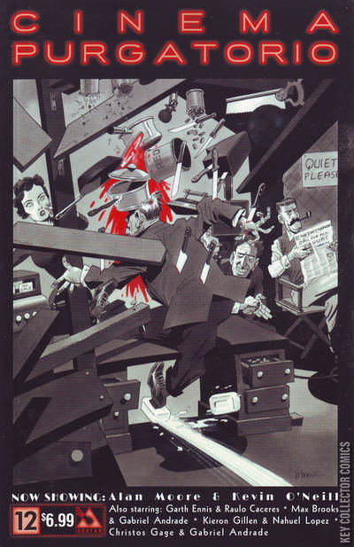 Monsters on the move in The Vast! Jana and the rest of her new team have trained their beasts for the battle ahead - going after Apex! A More Perfect Union sees the true medicinal value of the insect discovered while in Code Pru the ghost of her parents are tormenting Pru. Modded gears up for Chainsaw Reggae Rhythm Action while Alan Moore and Kevin O'Neill weave a tale in the tapestry of cinematic history. The finest anthology in history continues. Join a master class of sequential artisans as they spin stories to terrify and delight. Now showing: Cinema Purgatorio by Alan Moore and Kevin O'Neill, A More Perfect Union by Max Brooks and Gabriel Andrade, Code Pru by Garth Ennis and Raulo Caceres, Modded by Kieron Gillen and Nahuel Lopez, and The Vast by Christos Gage and Gabriel Andrade. Each story has its own cover by the series artist and there is also an Ancient Tome Premium edition limited to 1000 copies.