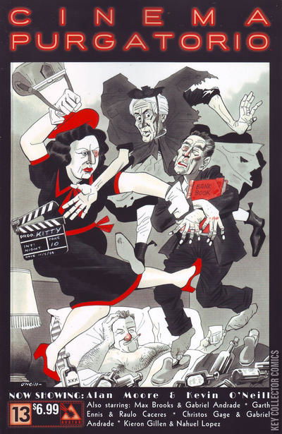 It's the USA vs Russia Monster Battle in The Vast! A More Perfect Union sees the relentless march of the insects present all-new concerns for the overwhelmed Army. In Code Pru, there appears to be a dinosaur in the city. Everyone's secrets are revealed while Alan Moore and Kevin O'Neill weave another tale in the tapestry of cinematic history. The finest anthology in comics today continues. Join a master class of sequential artisans as they spin stories to terrify and delight. Now showing: Cinema Purgatorio by Alan Moore and Kevin O'Neill, A More Perfect Union by Max Brooks and Gabriel Andrade, Code Pru by Garth Ennis and Raulo Caceres, Modded by Kieron Gillen and Nahuel Lopez, and The Vast by Christos Gage and Gabriel Andrade. Each story has its own cover by the series artist and there is also an Ancient Tome Premium edition limited to 1000 copies.