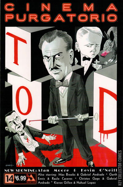 Join a master class of sequential artisans as they spin stories to terrify and delight in the finest anthology in comics. Now showing: Cinema Purgatorio by Alan Moore and Kevin O'Neill, A More Perfect Union by Max Brooks and Gabriel Andrade, Code Pru by Garth Ennis and Raulo Caceres, Modded by Kieron Gillen and Nahuel Lopez, and The Vast by Christos Gage and Gabriel Andrade. Each story has its own cover by the series artist and there is also an Ancient Tome Premium edition limited to 1000 copies.