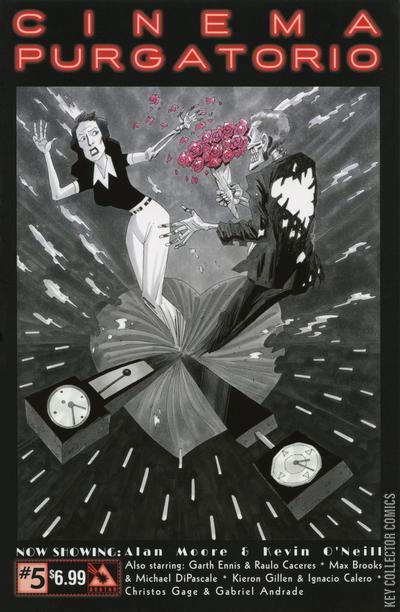 They've taken your ticket and ushered you to a seat. You know something is wrong here. You can feel it in the very fabric of the dingy and smoky theatre you sit in. It's an almost palpable dread you feel as the lights go down and the first reel begins to play... This issue continues Cinema Purgatorio by Alan Moore and Kevin O'Neill, A More Perfect Union by Max Brooks and Michael DiPascale, Code Pru by Garth Ennis and Raulo Caceres, Modded by Kieron Gillen and Ignacio Calero, and The Vast by Christos Gage and Gabriel Andrade. Each story has its own cover by the series artist and there is also an Ancient Tome Premium edition limited to 1000 copies.