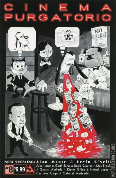 A deep seeded dread spreads over you as you sit in the otherworldly movie theatre. The smell of burnt popcorn is tinged with something else, something coppery... blood? As the first film starts to dance across the screen you hear a strangled choke from behind you. What have you gotten yourself into? This is the theatre of the surreal from the imagination of the one and only Alan Moore! Prepare yourself for twisted tales from the masters of the art form. Now showing: Cinema Purgatorio by Alan Moore and Kevin O'Neill, A More Perfect Union by Max Brooks and Michael DiPascale, Code Pru by Garth Ennis and Raulo Caceres, Modded by Kieron Gillen and Ignacio Calero, and The Vast by Christos Gage and Gabriel Andrade. Each story has its own cover by the series artist and there is also an Ancient Tome Premium edition limited to 1000 copies.