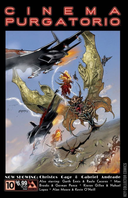 From the Civil War re-imagined with giant insects, to the dystopian giant monsters of the Vast. Seduced by the cute, yet overwhelmed, Pru or guffawing at the madcap Modded. Or just enthralled by the tapestry of cinematic history upon which Alan Moore is weaving another masterful tale, the finest anthology in history continues. Join a master class of horror creators as they spin stories to terrify and delight. Now showing: Cinema Purgatorio by Alan Moore and Kevin O'Neill, A More Perfect Union by Max Brooks and Gabriel Andrade, Code Pru by Garth Ennis and Raulo Caceres, Modded by Kieron Gillen and Nahuel Lopez, and The Vast by Christos Gage and Gabriel Andrade. Each story has its own cover by the series artist and there is also an Ancient Tome Premium edition limited to 1000 copies.