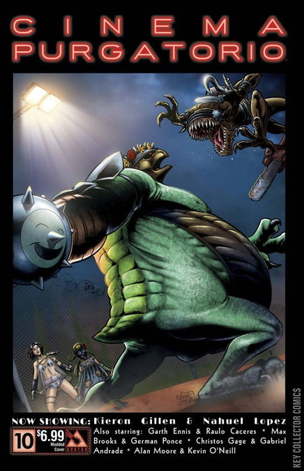 From the Civil War re-imagined with giant insects, to the dystopian giant monsters of the Vast. Seduced by the cute, yet overwhelmed, Pru or guffawing at the madcap Modded. Or just enthralled by the tapestry of cinematic history upon which Alan Moore is weaving another masterful tale, the finest anthology in history continues. Join a master class of horror creators as they spin stories to terrify and delight. Now showing: Cinema Purgatorio by Alan Moore and Kevin O'Neill, A More Perfect Union by Max Brooks and Gabriel Andrade, Code Pru by Garth Ennis and Raulo Caceres, Modded by Kieron Gillen and Nahuel Lopez, and The Vast by Christos Gage and Gabriel Andrade. Each story has its own cover by the series artist and there is also an Ancient Tome Premium edition limited to 1000 copies.