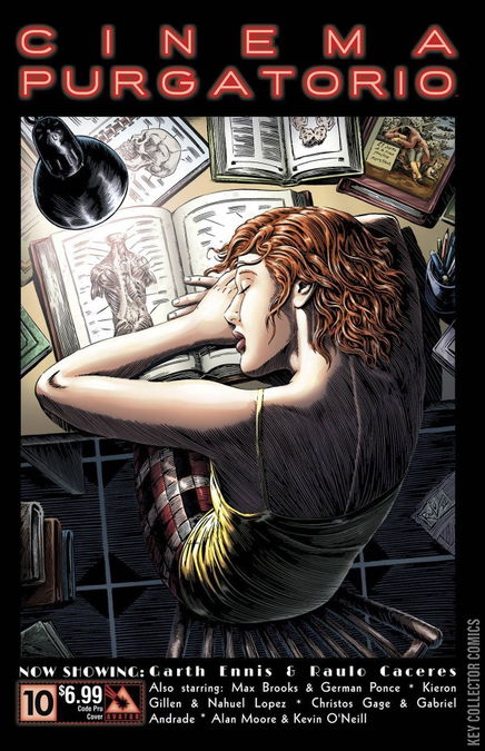 From the Civil War re-imagined with giant insects, to the dystopian giant monsters of the Vast. Seduced by the cute, yet overwhelmed, Pru or guffawing at the madcap Modded. Or just enthralled by the tapestry of cinematic history upon which Alan Moore is weaving another masterful tale, the finest anthology in history continues. Join a master class of horror creators as they spin stories to terrify and delight. Now showing: Cinema Purgatorio by Alan Moore and Kevin O'Neill, A More Perfect Union by Max Brooks and Gabriel Andrade, Code Pru by Garth Ennis and Raulo Caceres, Modded by Kieron Gillen and Nahuel Lopez, and The Vast by Christos Gage and Gabriel Andrade. Each story has its own cover by the series artist and there is also an Ancient Tome Premium edition limited to 1000 copies.
