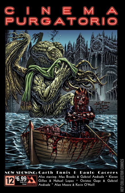 Monsters on the move in The Vast! Jana and the rest of her new team have trained their beasts for the battle ahead - going after Apex! A More Perfect Union sees the true medicinal value of the insect discovered while in Code Pru the ghost of her parents are tormenting Pru. Modded gears up for Chainsaw Reggae Rhythm Action while Alan Moore and Kevin O'Neill weave a tale in the tapestry of cinematic history. The finest anthology in history continues. Join a master class of sequential artisans as they spin stories to terrify and delight. Now showing: Cinema Purgatorio by Alan Moore and Kevin O'Neill, A More Perfect Union by Max Brooks and Gabriel Andrade, Code Pru by Garth Ennis and Raulo Caceres, Modded by Kieron Gillen and Nahuel Lopez, and The Vast by Christos Gage and Gabriel Andrade. Each story has its own cover by the series artist and there is also an Ancient Tome Premium edition limited to 1000 copies.